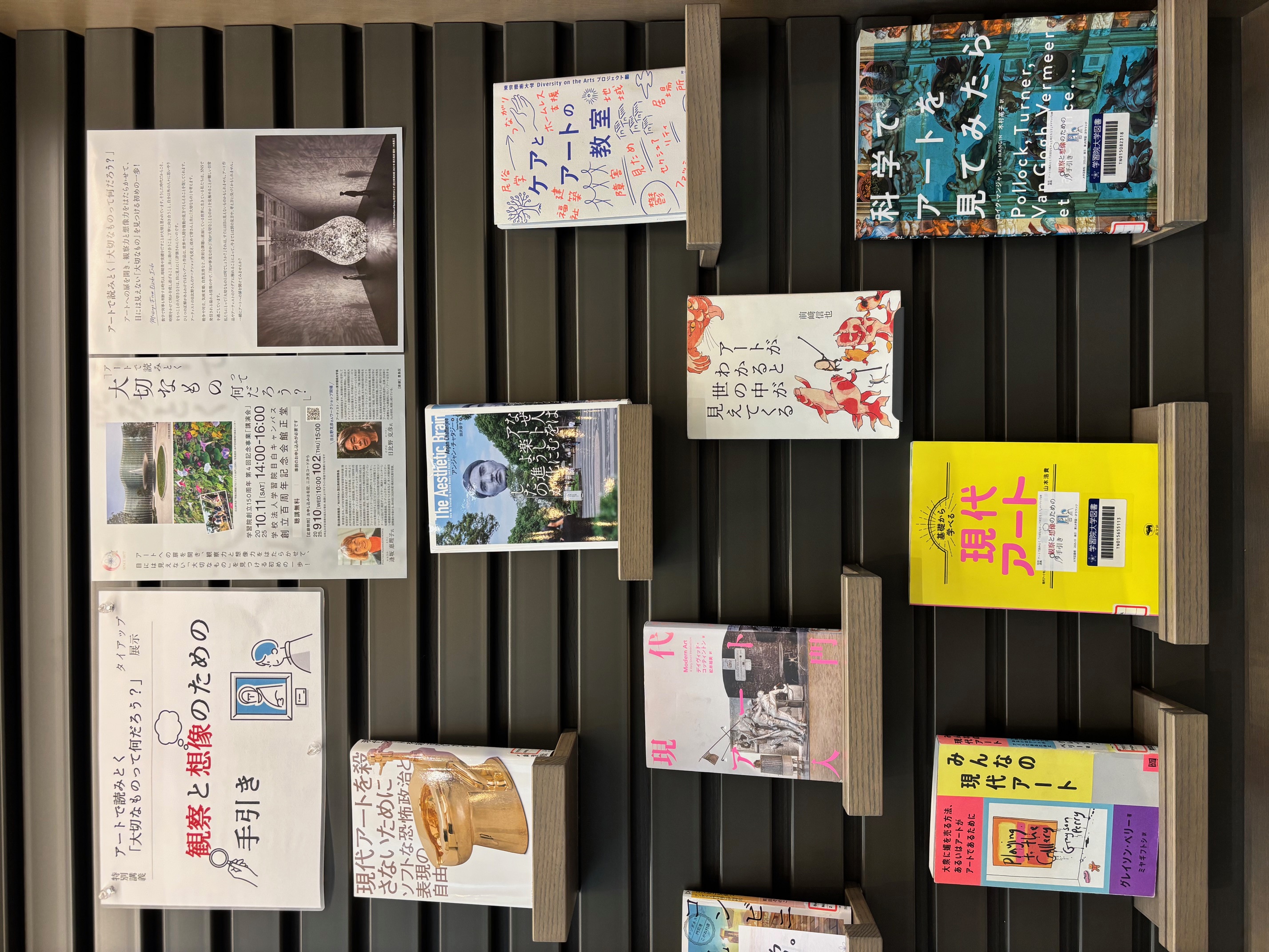 9月26日より、学習院創立150周年 第4回記念事業「特別講義 アートで読みとく「大切なものってなんだろう?」」(10月11日開催)とタイアップした展示「観察と想像のための手引き」を2階 Grove Loungeにて開始しました。学生の皆さんがアートとの出会いを通じ、身の回りのこと、社会のことについて考えるきっかけになるような資料を選んでいます。